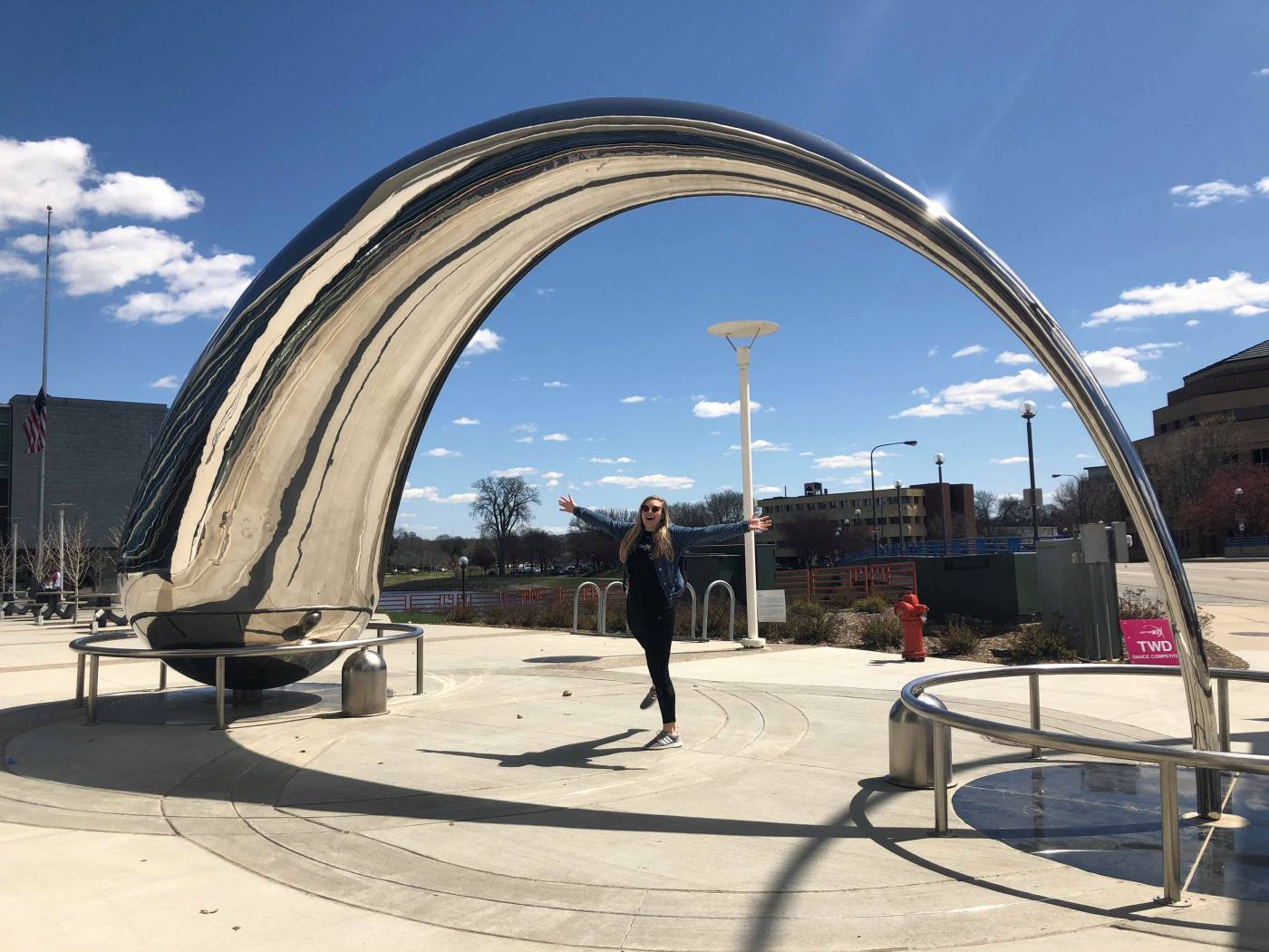 All day there were dancers, parents, and other pedestrians in town posing for, and selfie-ing with this giant shiny piece of art. Here are some specs on it: