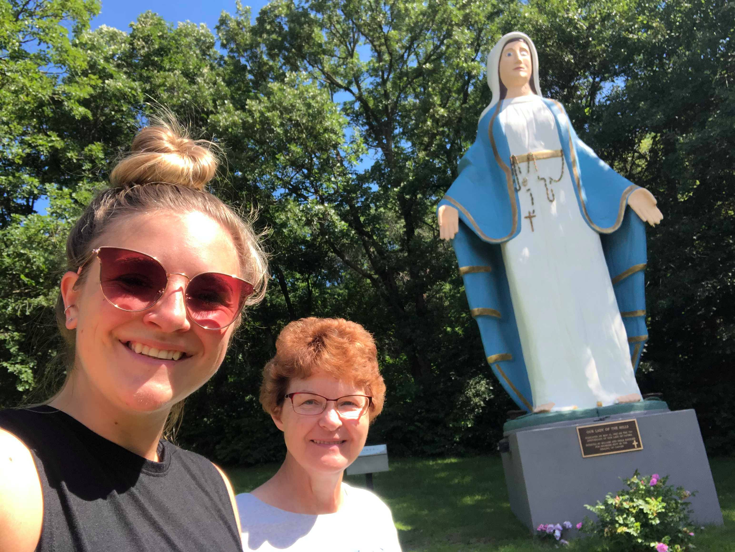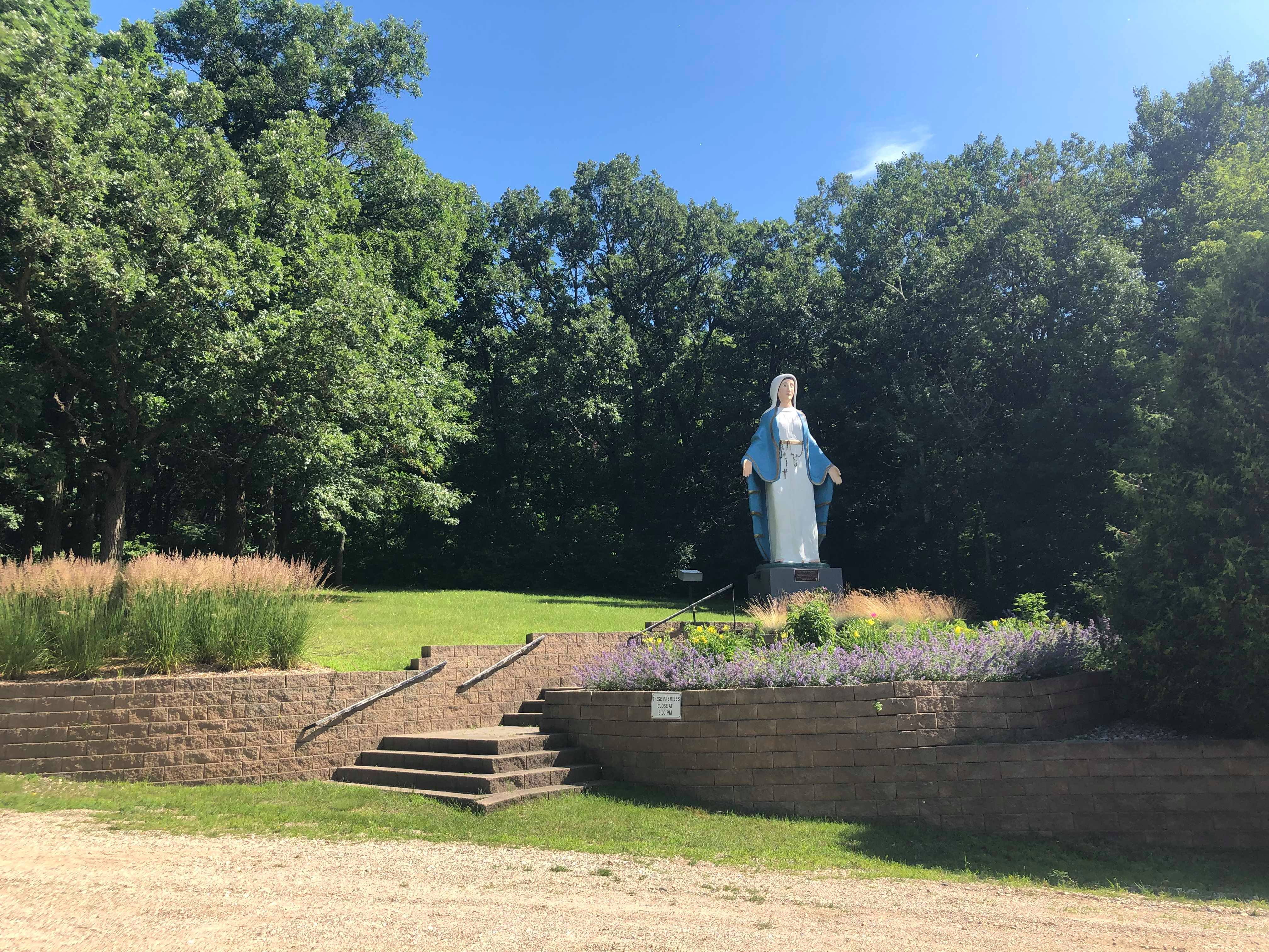 A giant 4,500 lb, 16.8 foot cement statue of The Virgin Mary stood in an immaculately landscaped area, just below the third highest hill in the state of Minnesota.