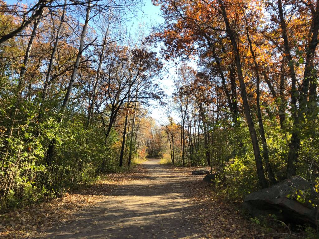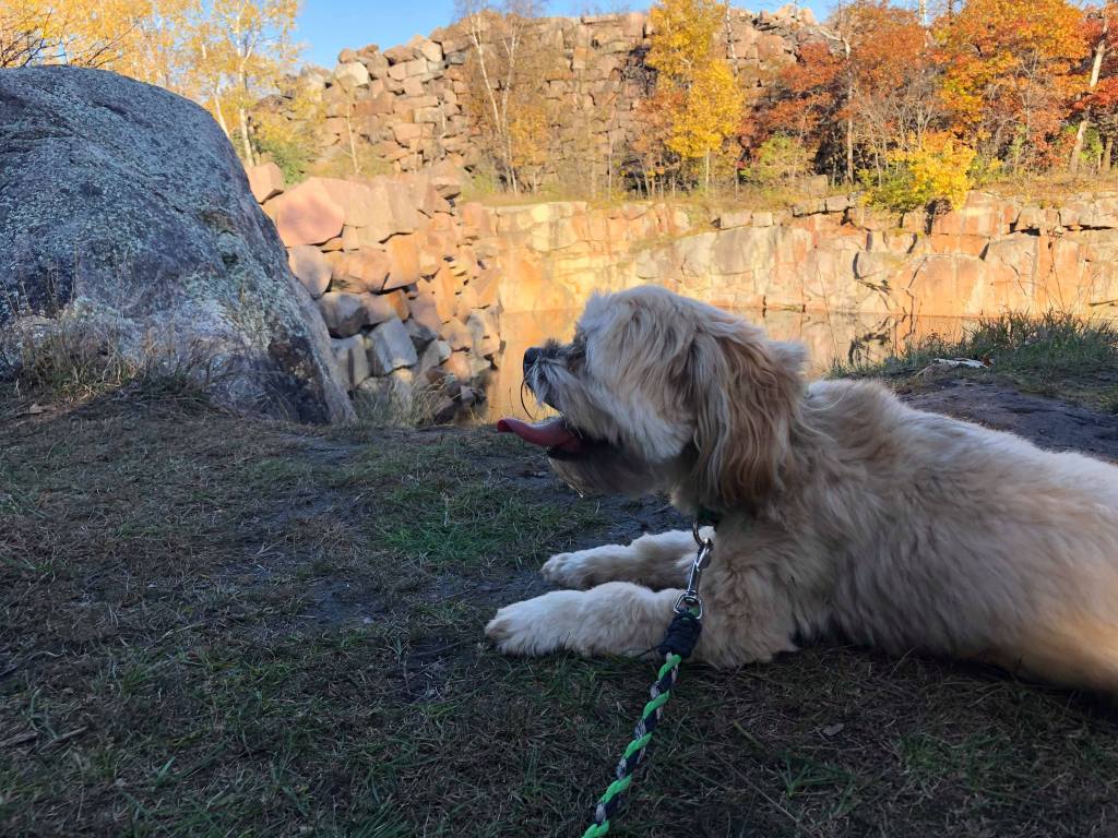 Pure blue skies, mid 60’s, and a gentle breeze had me longing to get outside and soak it in. There aren’t many days left like this before the stereotypical long Minnesota winter shows up. I came home from work and roped my fiance Cory and dog Norman into going for a hike around Quarry Park and Nature Preserve in Waite Park.