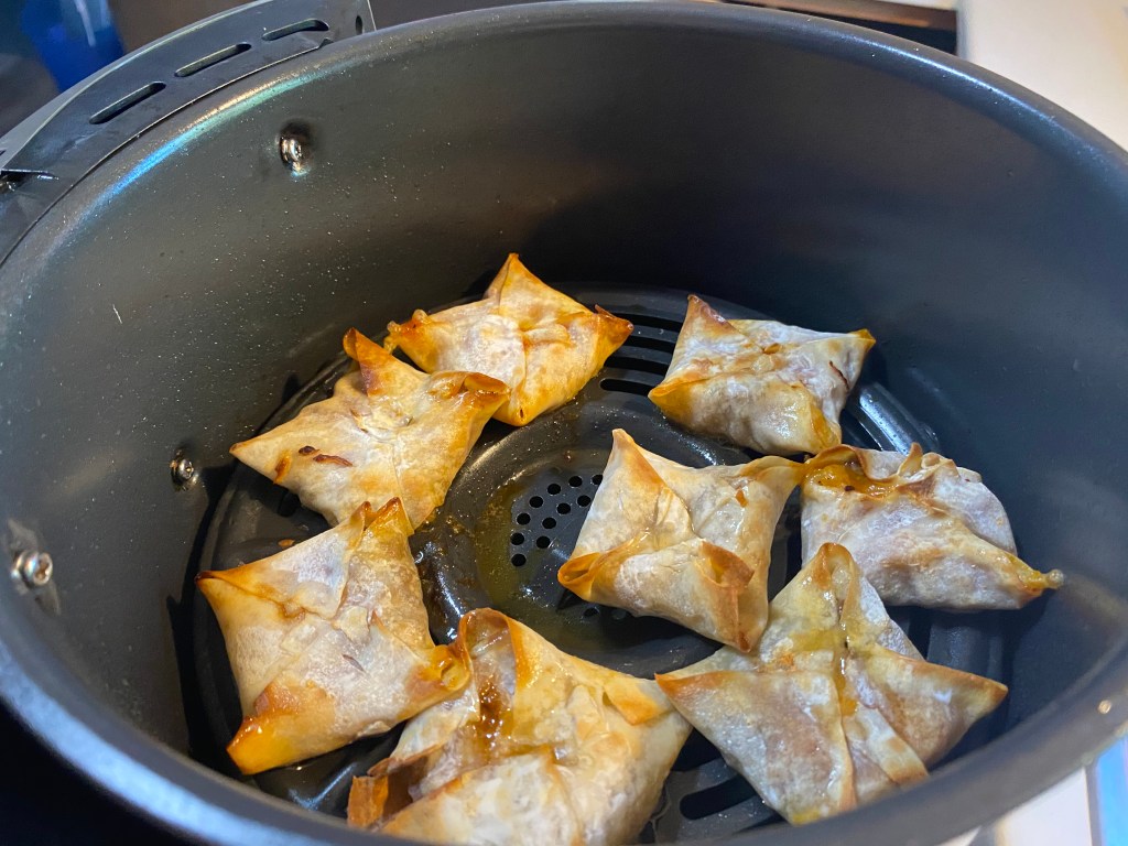 - Place in an air fryer at 360 for 4 minutes until golden brown. Or bake in a muffin tin in the oven at 375 for 7-10 minutes until golden brown.