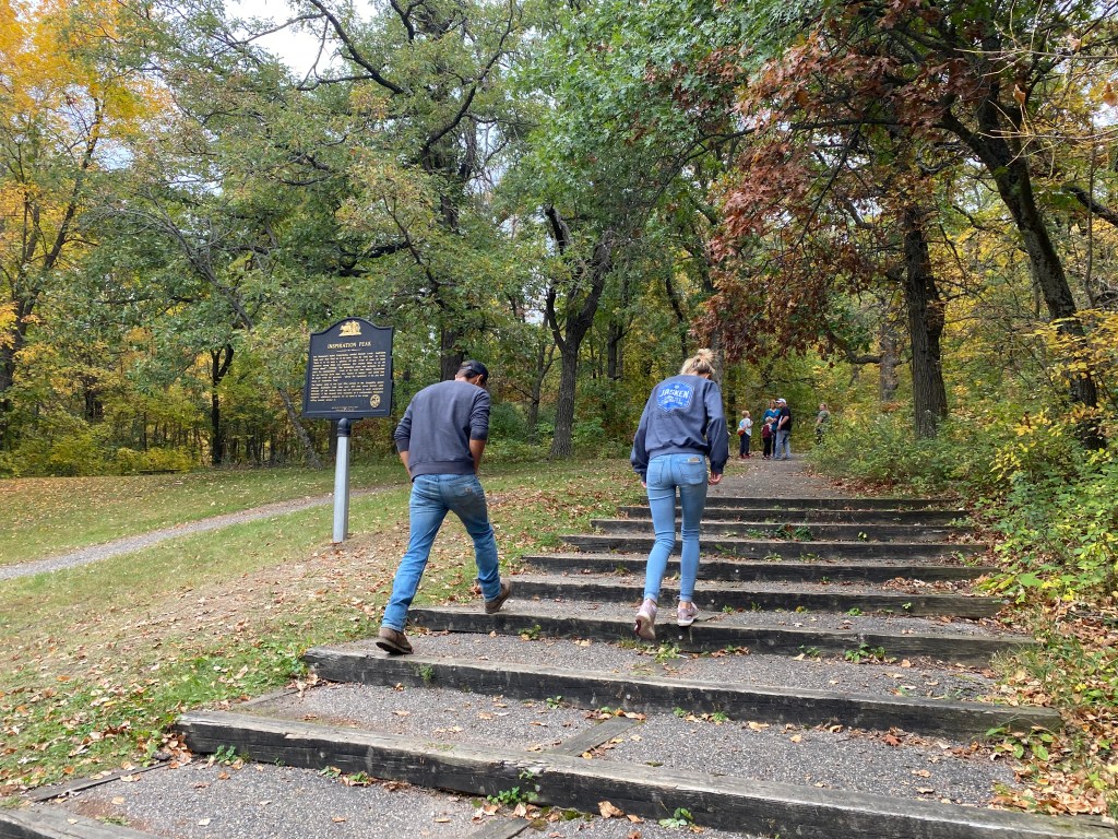 Over the weekend we had our final family weekend of the season in Battle Lake at my grandparents cabin. My sister, brother-in-law, and I snuck off for an hour to go hike Inspiration Peak in search of fall colors.