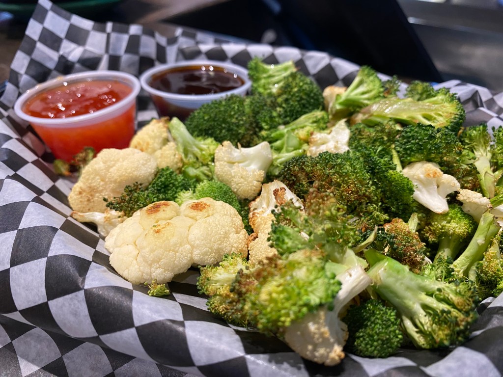 House of Pizza probably isn’t the first place you think of when you’re seeking out “Health Conscious” options, but that is what is great about Restaurant Week, it makes you think outside the box and try things you might not always branch out for. House of Pizza is known for killer unique pizzas, but this week they featured Oven Roasted Veggie Wings. These are cauliflower and broccoli florets tossed in your choice of specialty wing sauce and oven-baked. We opted for sauce on the side, and went with a sweet thai chili and a Chipotle chili sauce for dipping. HOP was the 3rd stop on our crawl and the veggies were a great palate cleanser after a few cheese heavy options (more on that later this week!) If you get these, I totally recommend the Chipotle sauce, it is so smoky and flavorful, they are also super shareable so get them for the table, along with a pizza.