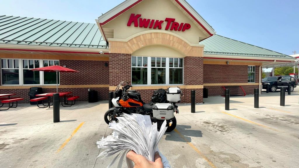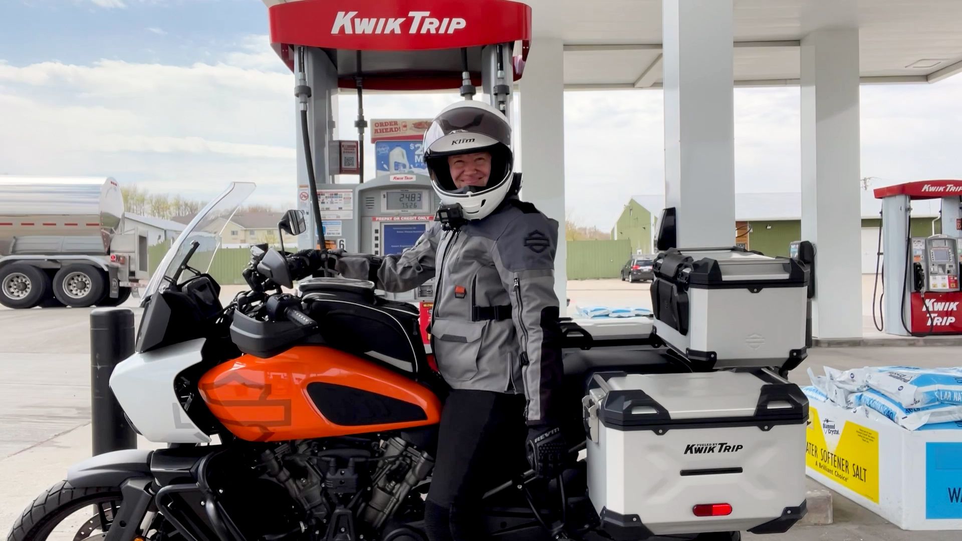 In May of 2023, Whitney completed a task like no other, she visited 546 Kwik Trip locations on her motorcycle, in just 11 days. Averaging 15 hours a day on the bike and hitting about 54 stops a day, she logged 4,550 miles during this project. 503 were in Wisconsin, two in Michigan, and the rest were in Illinois and Southern Iowa. As a long-distance endurance rider, she loves to push herself to see how far she can go on the bike.