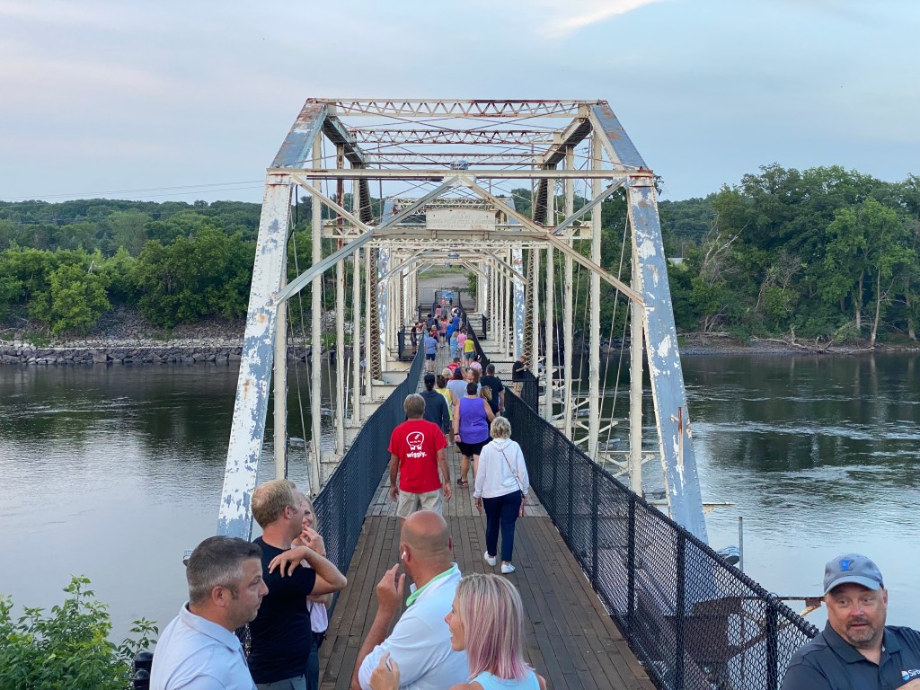 The grand opening of the bridge turned a great crowd. Lots of people came out to celebrate the event with the City of Sartell, watch the ribbon butting, and be the first people to walk across this historic landmark. It helped that it was a perfect evening with temps in the mid-70s and no wind. I thoroughly enjoyed the short-but-sweet ceremony and can’t wait to see what the city does with the land on the other side of the river.