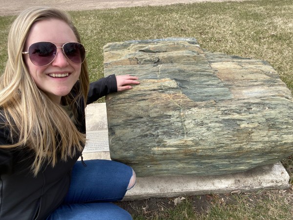 I got to see this last April when my fiancé and I were talking a walk in Holdingford checking out the covered bridge on the Lake Wobegon Trail. We parked in a nearby lot, and right by my car was this large piece of petrified wood and I gravitated to it like a moth to a flame.